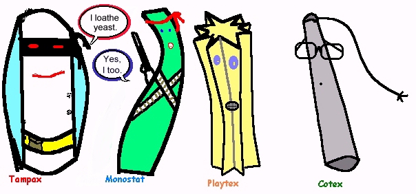 Monostat, Playtex, and Cotex" and the main bad guy would be called