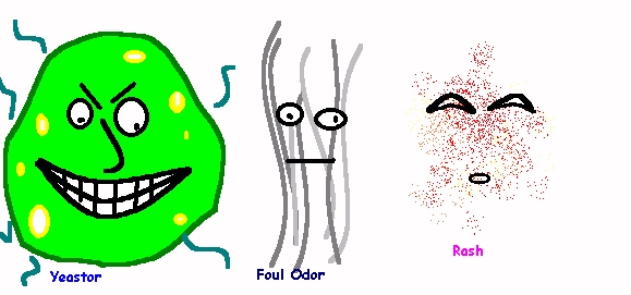 "Yeastor", perpetuator of fungii, with his evil henchmen: "Foul Odor" and