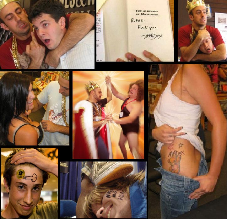 book tour to people who dress up (schoolgirl outfits, tuxedos, vageyena man, Ash from Army of Darkness, or other cool shit). If you impress me, you may get a prize. Prizes include: an exclusive t-shirt made for the