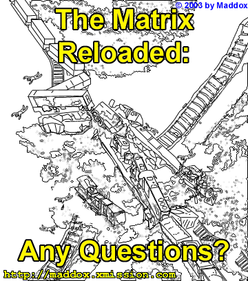 The image above summarizes everything. While it wasn't the holocaust that was Star Wars: Episode I, it was a let down even if you had low expectations: packed full of "deep" philosophical notions, straight out of a Philosophy 101 class full of aging hippies with nappy haircuts. I hate to say it, but they some how managed to make fight scenes boring (something I didn't think was physically possible until I watched this movie--they were too long with no pay off, unless you consider Neo running away like a pussy in every scene a pay off). I know most of you who liked this movie are probably reading this and saying "STUPID MADOX [sic]! YOU JUST DIDN'T GET IT." Oh no, I got it, it's just that once I got it, I didn't want it anymore. There are going to be websites popping up left and right trying to justify this movie, trying to rationalize everything, but there's one thing all these geeks are forgetting: just because a movie makes sense, doesn't mean it's good. There are plenty of movies that make sense, and are about as entertaining as a box of pig shit. So without further ado, here's how the movie could have been improved: