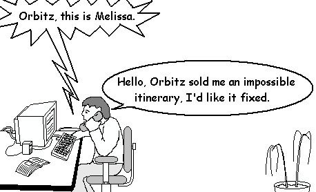 So I called Orbitz back, they told me to call Delta and United. I did, and I spoke to managers at both Delta and United who confirmed that the itinerary was impossible to fulfill, and both of them referred me back to Orbitz. Before I called to tear Orbitz a new one, I checked the fine print of my itinerary to make sure it didn't mention anything about having to break the laws of physics for all or part of my trip. The email notification made no mention of this either. My conversation with Orbitz went something like this: