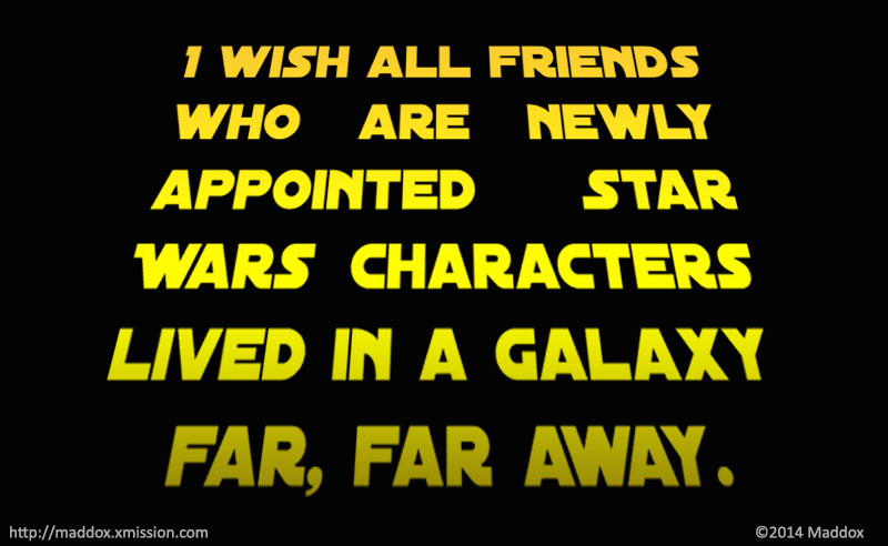 I wish all friends who are newly appointed Star Wars characters lived in a galaxy far, far away.